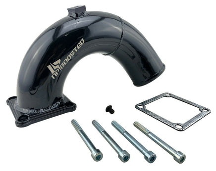 This Steel intake elbow has 4 - 1/8 NPT fitting for Gauges / Nitrous / Meth Injection