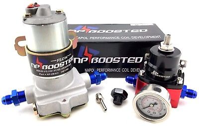 Kit Includes 140 Gallon Per Hour / 14 PSI High Performance Fuel Pump - for 3/8" Fittings Adjustable Fuel Pressure Regulator - AN6 Fittings Size 0-160 PSI Fuel Pressure Gauge ~ With (4) Four AN6 Fittings for pressure Reg and Fuel Pump Inlet / Outlet ~ Solid construction 2 Year Warranty EXCEED OEM PERFORMANCE Brand New Pump kit in box. Free Shipping: USA & Canada