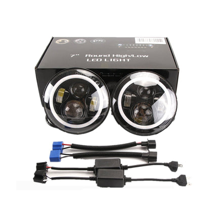 2PC 7" Round 40W LED Halo Angel Eyes Headlight For Jeep Wrangler TJ LJ CJ JK