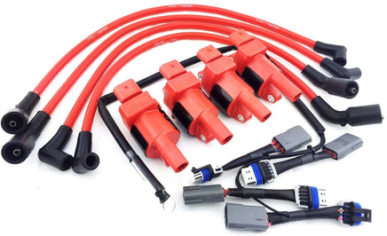 NPBoosted Coil development (4) FOUR D514A PERFORMANCE COIL PACKS LS2 / LS3 / LS4 / LS7 & RX8 IGNITION Coil Adapter Harness High Quality 28" Conversion Kit & 10MM High Performance Coil Wire Set 23" x 2 / 21.5" x 2 All in one kit!! This Plug-n-Play Harness is used to connect any of the Coils listed below directly to your RX-8 wiring harness without having to cut and splice into your factory harness. 2004, 2005, 2006, 200, 2008, 2009, 2010, 2011 Mazda RX-8 / RX8 Wire harness conversion kit and 10mm ignition wires with (4) FOUR High performance LS7 COIL PACKS