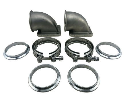 2 Pack 3" Vband 90 Degree Cast Elbow Adapter Flange + V-Band Clamps 2 Pcs fits T4 & T3 Turbochargers