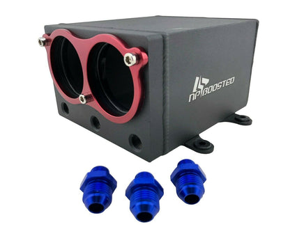FUEL PUMP UNIVERSAL DOUBLE PUMPS BILLET SURGE TANK KIT 60mm Port w/ 3 Pcs AN8 8AN Fittings for 044 0580254044