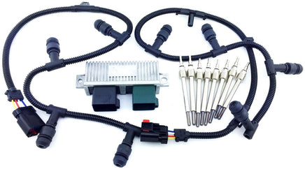 Set of (8) Eight High performance Dual Coil Glow Plugs Plus (2) Two Piece Harness Kit Left + Right side Ford 2004 2005 2006 2007 2008 2009 2010 6.0L V8 Turbo Diesel Engines (1) ONE GPCM GLOW PLUG CONTROL MODULE Right & Left Glow Plug / Injector Wire Harness's Gasket & 8 Dual Coil Performance Glow Plugs is a direct fit for the following: ~ALL FORD 6.0L TURBO DIESEL ENGINES BUILT AFTER 1/15/04~ 2004-2010 Ford F-250 F-350 F-450 F-550 Super Duty -With 6.0L Diesel Engines -Includes Both Right & Left Glow Plug Harness's & EIGHT (8) Glow Plugs For One Low Price! Ford 2004-2010 Excursion / Econoline E-250 E-350 E-450 E-550 -With 6.0L Diesel Engines -Includes Both Right & Left Glow Plug Harness's & EIGHT (8) Glow Plugs For One Low Price!